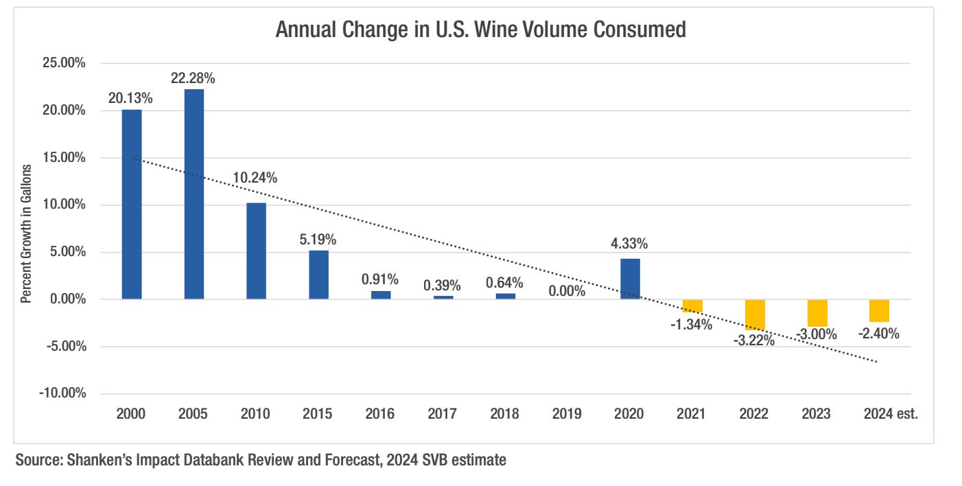 Persistent consumer trends include the popularity of rosé, white gaining share against red, Burgundy/Champagne/Italy regions remaining strong, and early prior decade favorites - Bordeaux and California - suffering most.